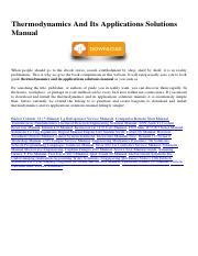 Read Online THERMODYNAMICS AND ITS APPLICATIONS SOLUTIONS MANUAL Kindle Editon